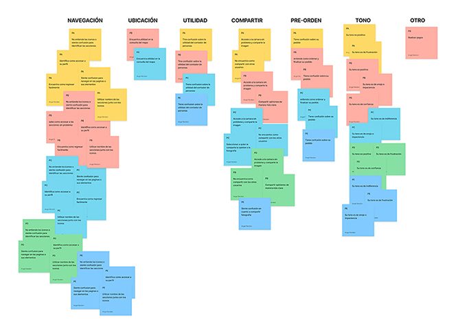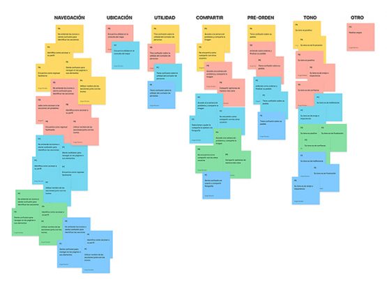 after user testing, an affinity map is made to match the findings by each user and define the improvement opportunities for the in-app browsing experience