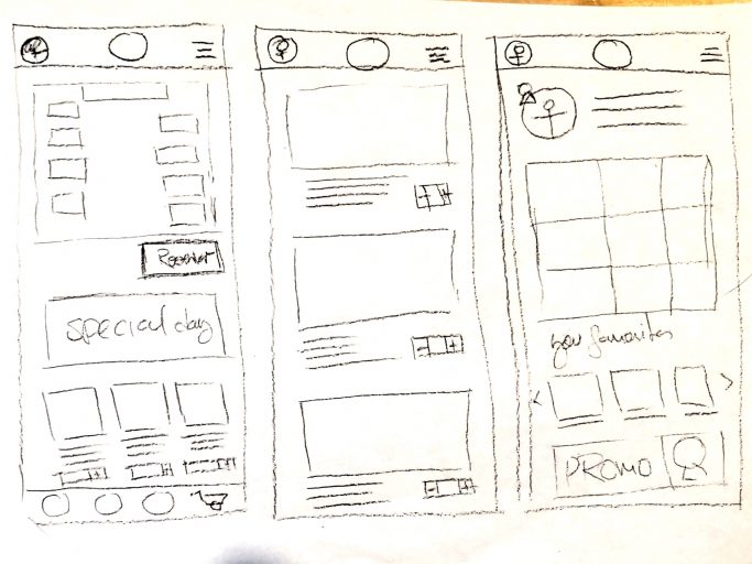 Once the analysis and determination of objectives and definition of our user person advanced we began to develop wireframes to distribute the elements and generate paper wireframes to solve the interactions prior to moving to a prototype